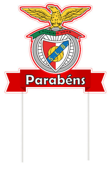 Topper ou topo para bolo com o tema do seu clube do coração, o Sport Lisboa e Benfica. Pode personalizar o texto, indique nas observações no fecho da encomenda.