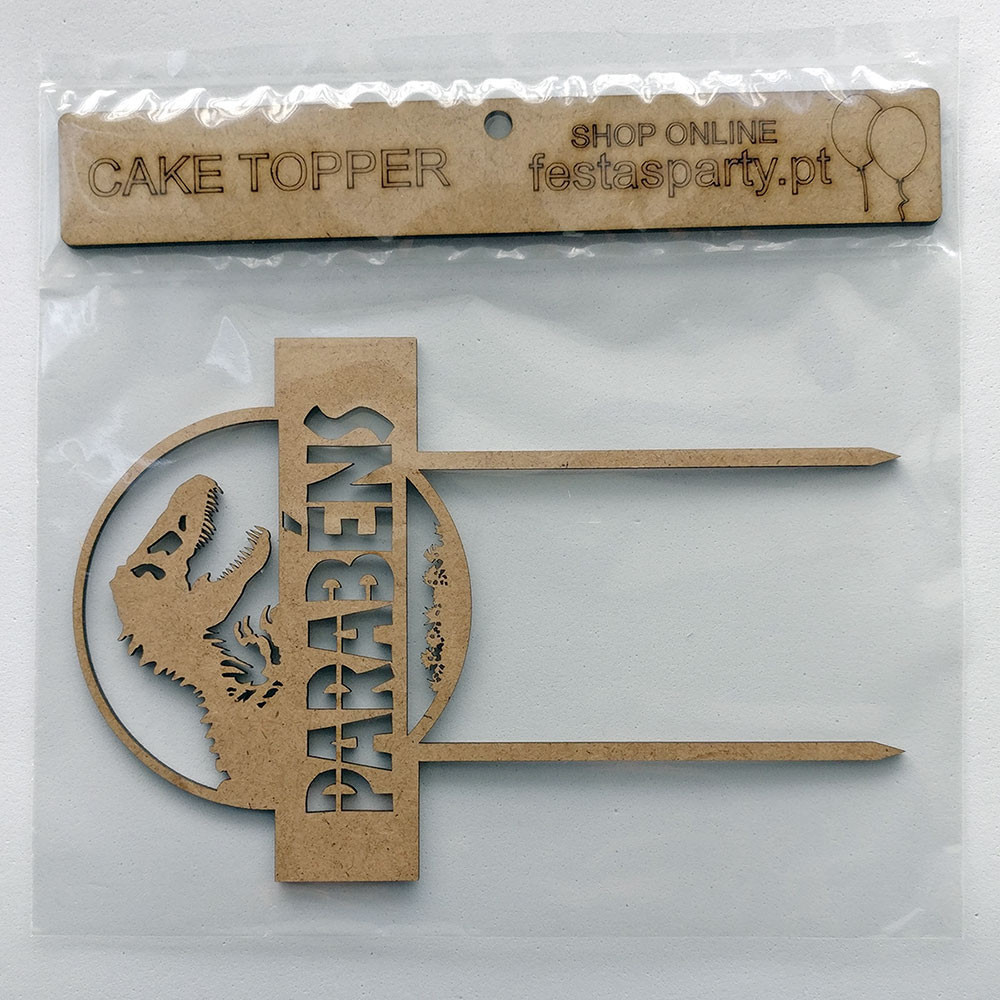 Topper em MDF cru inspirado no tipo de letra e imagem do logotipo Parque Jurássico ideal para festas com o tema dinossauros.