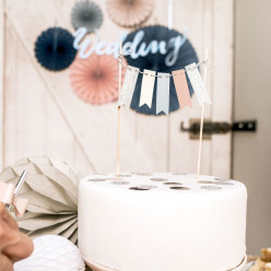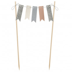 Cake topper em tons pastel para bolo de aniversário, casamento ou outra comemoração. Com glitter em algumas bandeiras.