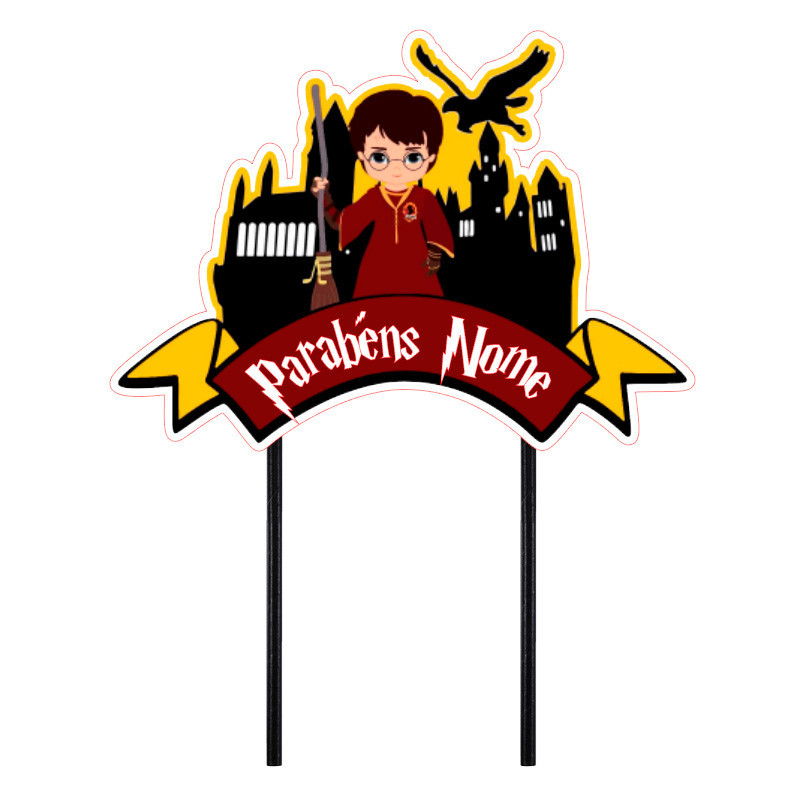 Topper para bolo com o tema Harry Potter que poderá personalizar ou colocar simplesmente Parabéns ou Felicidades. Introduza o texto pretendido nas observações no fecho da encomenda.