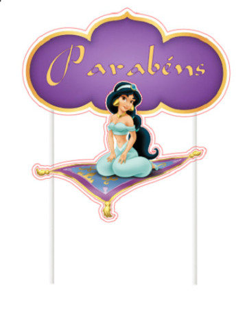 Topper ou topo para bolo da Jasmine da Disney. Pode personalizar o texto, indique nas observações no fecho da encomenda, parabéns, felicidades, nome.