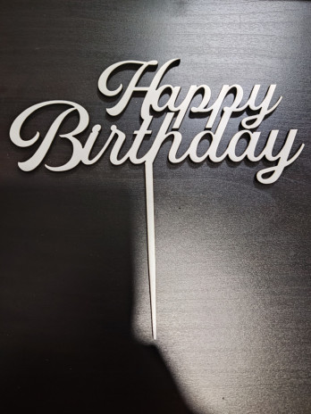 Topper ou topo para bolo com a expressão Happy Birthday, em mdf cru. Artigo resistente fabricado em MDF ideal para decorar o seu bolo de aniversário.