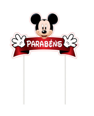 Topper ou topo para bolo com o tema do Mickey da Disney. Pode personalizar o texto, indique nas observações no fecho da encomenda.