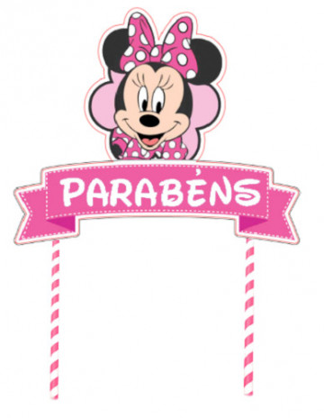 Topper ou topo para bolo com o tema da Minnie da Disney. Pode personalizar o texto, indique nas observações no fecho da encomenda.