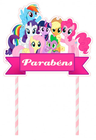 Topper ou topo para bolo com o tema My Little Pony. Pode personalizar o texto, indique nas observações no fecho da encomenda.