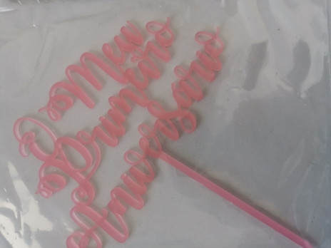 Topper em acrilico rosa com a inscrição "O Meu Primeiro Aniversário".