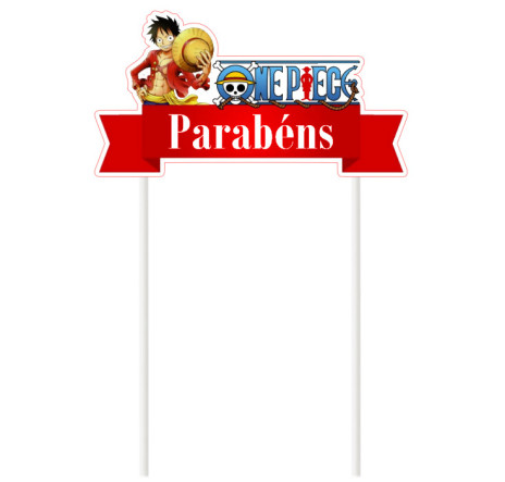 Topper ou topo para bolo do One Piece. Pode personalizar o texto, indique nas observações no fecho da encomenda, parabéns, felicidades, nome.