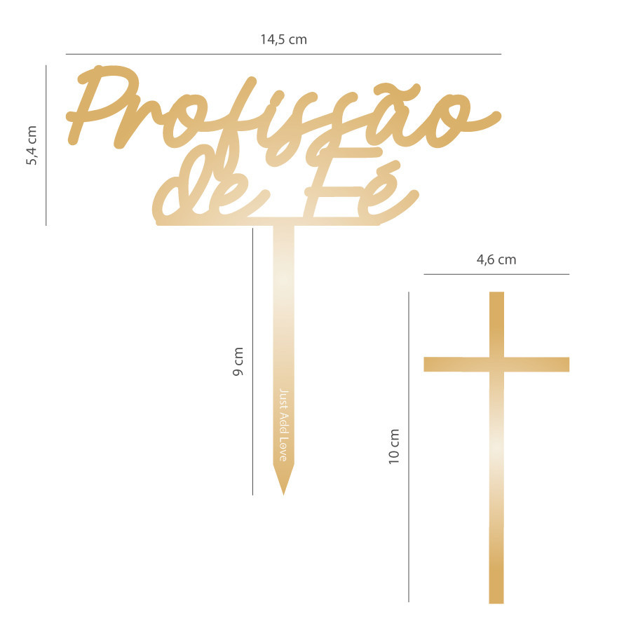 Topper Bolo Profissão de Fé + Cruz Ouro