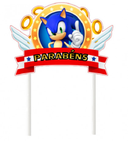 Topper ou topo para bolo com o tema do Sonic. Pode personalizar o texto, indique nas observações no fecho da encomenda.
