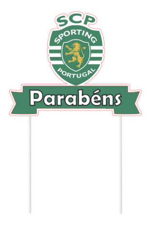 Topper ou topo para bolo com o tema do seu clube do coração, o Sporting Clube de Portugal. Pode personalizar o texto, indique nas observações no fecho da encomenda.