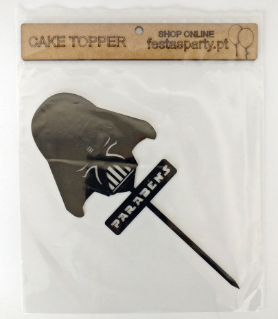 O topper que não pode faltar no bolo de aniversário de um verdadeiro fã da saga Star Wars. Inspirado no Darth Vader e fabricado em acrilico preto.