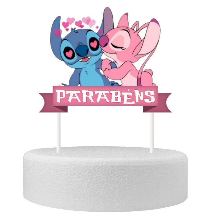 Topper para decoração de bolos de aniversário com o Stitch e a Angel dos filmes Lilo & Stitch.