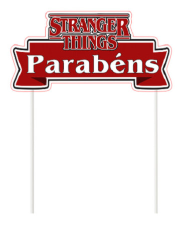 Topper ou topo para bolo da série Stranger Things. Pode personalizar o texto, indique nas observações no fecho da encomenda.