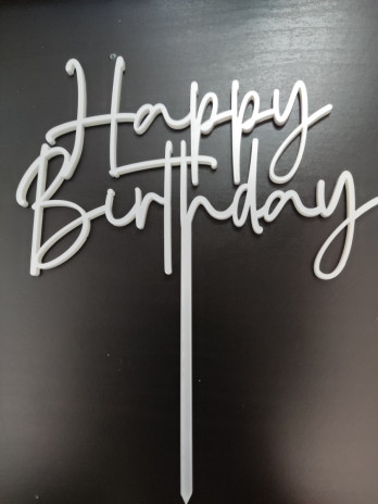 Topper Happy Birthday Acrílico Prateado