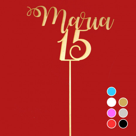Faça do seu bolo de aniversário uma peça única com este topper resistente em MDF de 3mm de espessura personalizado com nome e idade.