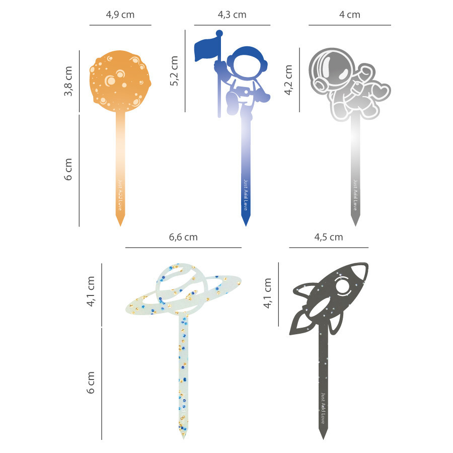 Conjunto de 5 toppers de acrílico com espessura de 3mm, ideal para decoração de cupcakes, bolos, sobremesas.