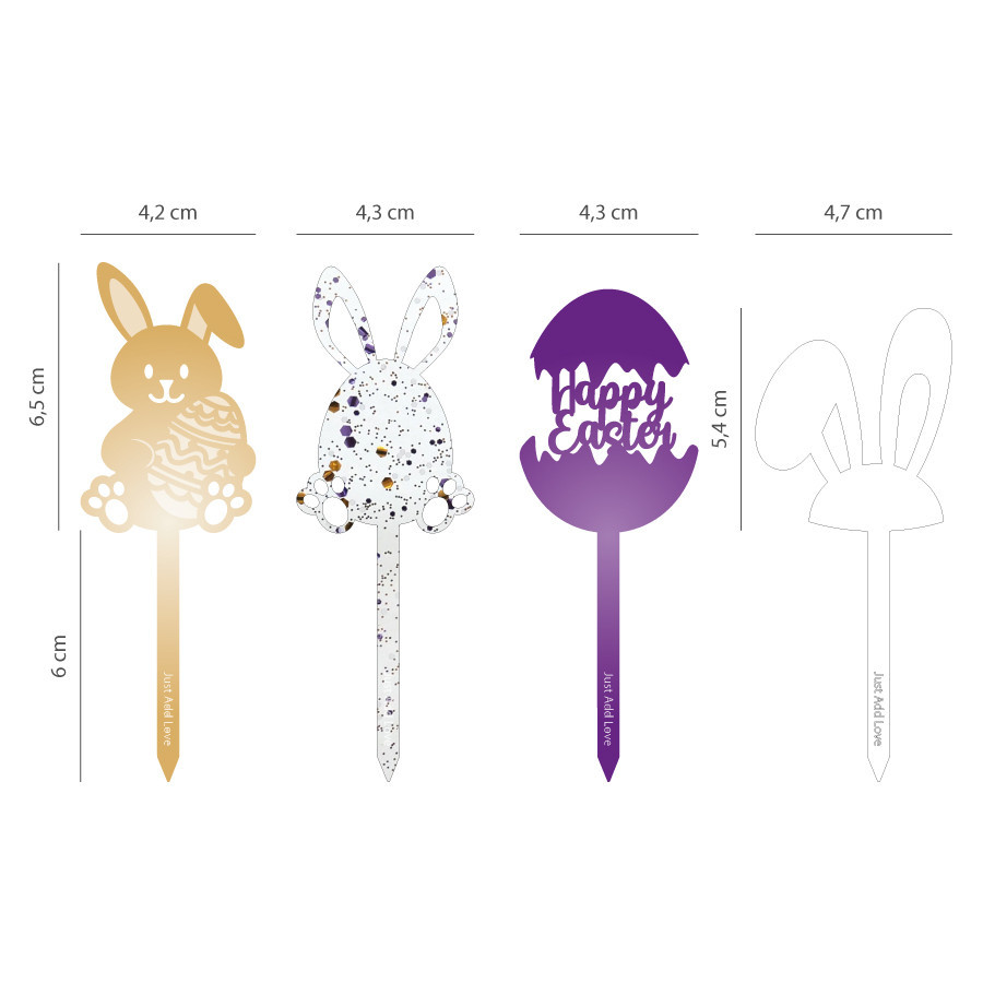 Conjunto de 4 toppers com elementos alusivos a Páscoa.