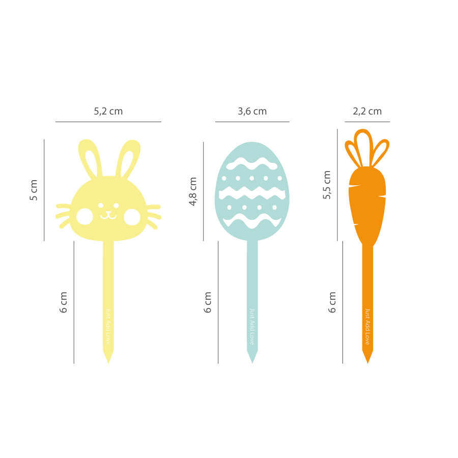 Conjunto de 3 toppers de acrílico com espessura de 3mm, ideal para decoração de cupcakes, bolos, sobremesas para celebrar a Páscoa.