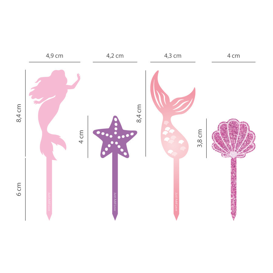 Conjunto de 4 toppers de acrílico com espessura de 3mm, ideal para decoração de cupcakes, bolos, sobremesas.