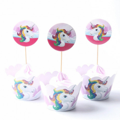 Pack de 12 invólucros + wrappers para cupcakes do Unicórnio Mágico.