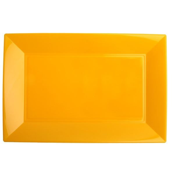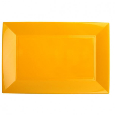 Prato de Plástico Rectangular amarelo torrado, cor de manga, robusto e simultaneamente leve, a cor brilhante irá adicionar o toque final a qualquer ocasião especial e podem ser facilmente utilizados como tabuleiros.