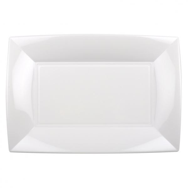 Prato de Plástico Rectangular branco, robusto e simultaneamente leve, a cor brilhante irá adicionar o toque final a qualquer ocasião especial e podem ser facilmente utilizados como tabuleiros.