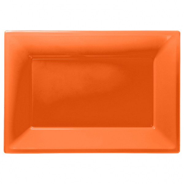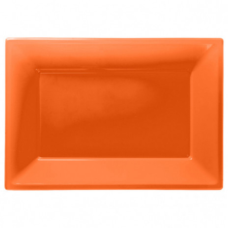 Prato de Plástico Rectangular laranja, robusto e simultaneamente leve, a cor brilhante irá adicionar o toque final a qualquer ocasião especial e podem ser facilmente utilizados como tabuleiros.