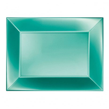 Prato de Plástico Rectangular verde cetim, robusto e simultaneamente leve, a cor brilhante irá adicionar o toque final a qualquer ocasião especial e podem ser facilmente utilizados como tabuleiros.