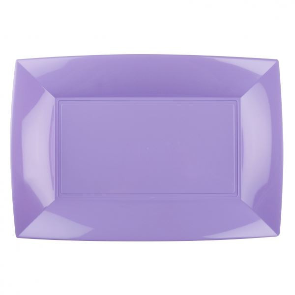 Prato de Plástico Rectangular violeta, robusto e simultaneamente leve, a cor brilhante irá adicionar o toque final a qualquer ocasião especial e podem ser facilmente utilizados como tabuleiros.