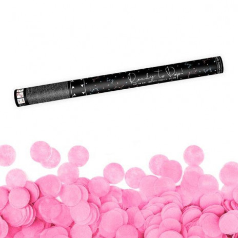 Lança confettis para festa de chá de bebé, baby shower com confettis em cor de rosa. Inclui um tubo de 60cm de disparo de confettis redondos azuis. Também disponível em azul.