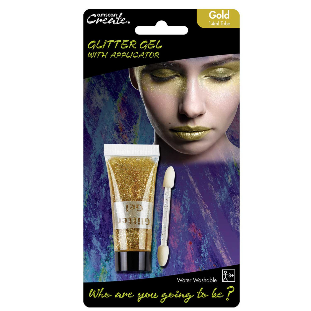 Tubo de 14ml com creme de pintura com aplicador de cor dourada com glitter, para o teu disfarce de halloween.