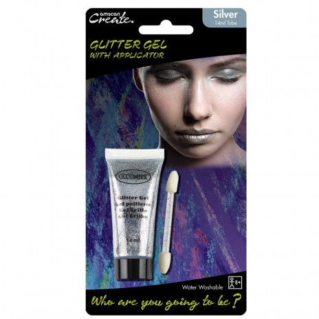 Tubo de 14ml com creme de pintura com aplicador de cor prateado com glitter, para o teu disfarce de halloween.