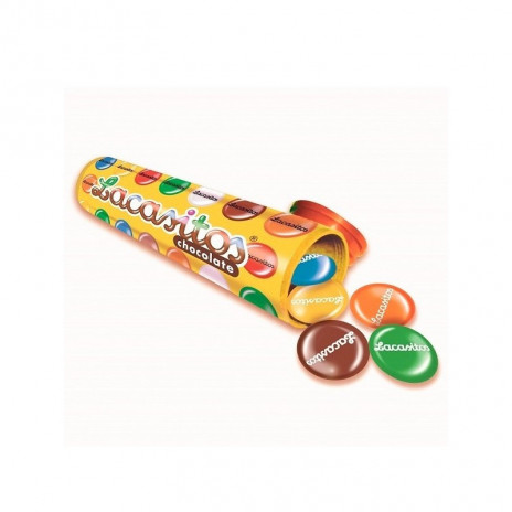 Tubinhos de chocolates com leite lacasitos com 20 gramas cada. Ideais para brindes de aniversário.
