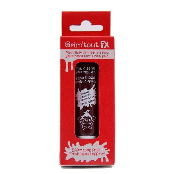 Acessório para pinturas faciais para festa, carnaval ou halloween. Inclui um tubo de sangue falso de 15mL da marca Grim'tout.