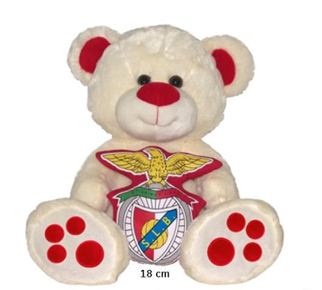 Peluche de urso do SLB Benfica com 18cms, muito fofinho, com uma almofadinha central onde esta o símbolo.