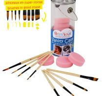 Acessórios para pinturas faciais para festa. Inclui caixa com 8 pincéis de diferentes tamanhos e 8 esponjas para aplicação das tintas GrimTout.