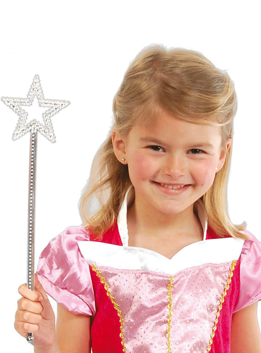 Um acessório para complementar o seu fato, a varinha de fada na cor prateada em forma de estrela.