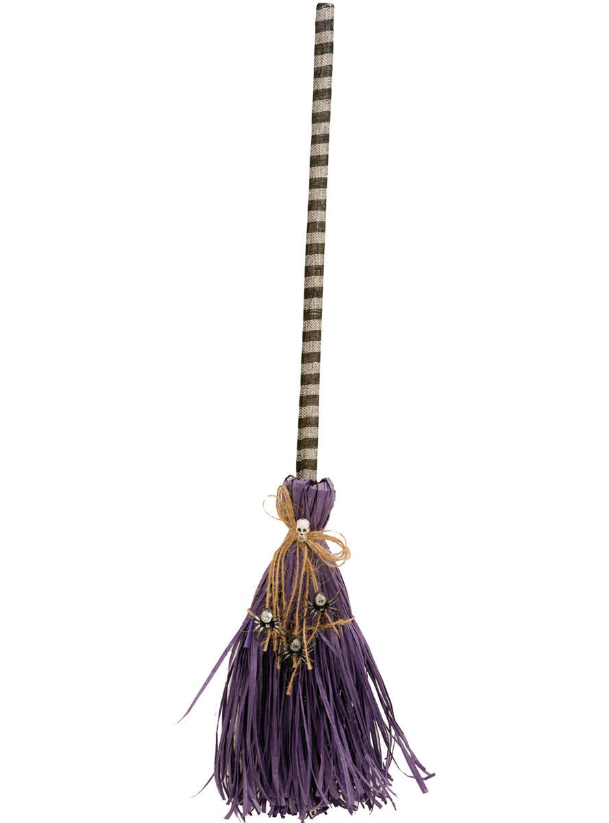 Vassoura rouxa para menina com aranhas. Um complemento para o teu disfarce de bruxa.