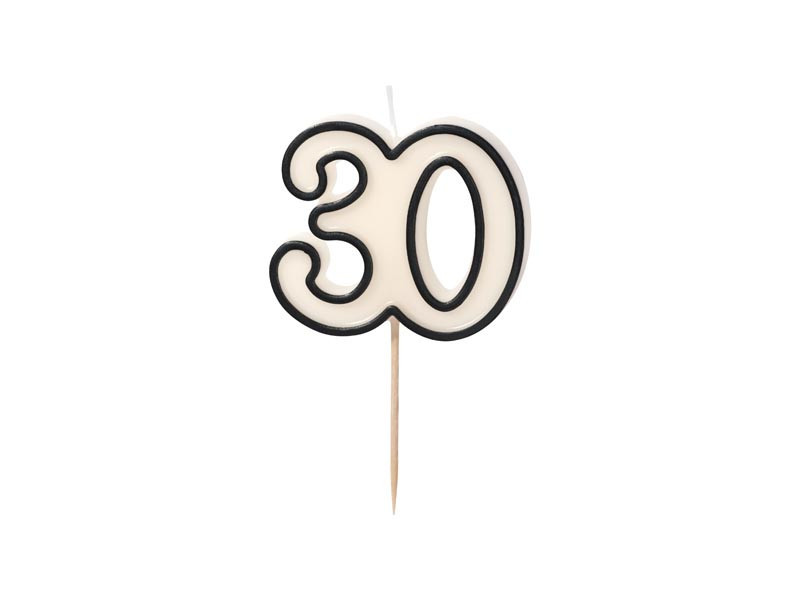 Vela de aniversário número trinta elegante a branco com risca a preto