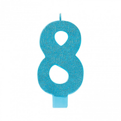 Vela de Aniversário de 13cm aproximadamente, nº 8 com glitter de cor azul turquesa