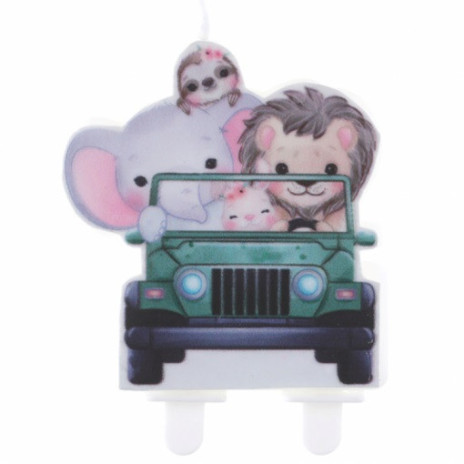 Original e divertida vela com o tema explorador animais, para colocar no bolo da tua festa de aniversário.