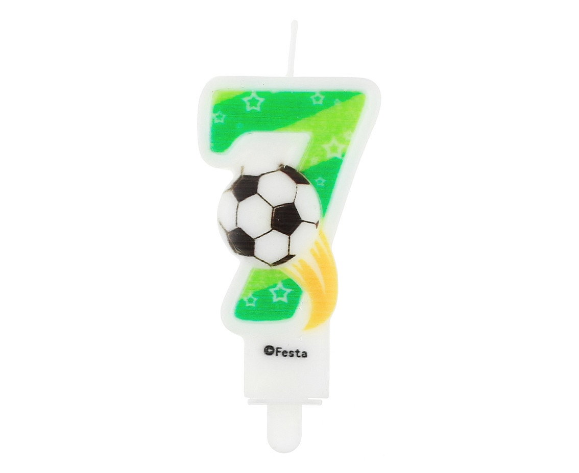 Vela com o número 7 para o bolo de aniversário do tema Futebol. Ideal para os meninos loucos por futebol.