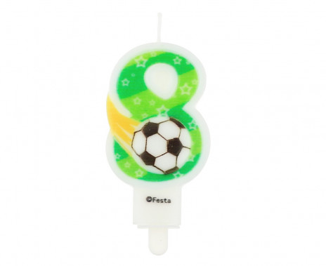 Vela com o número 8 para o bolo de aniversário do tema Futebol. Ideal para os meninos loucos por futebol.