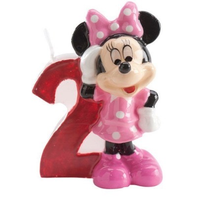 Vela da Minnie Mouse da Disney em 3D para o bolo de aniversário do tema Minnie Mouse, com o número 2, com 6,5 cm.