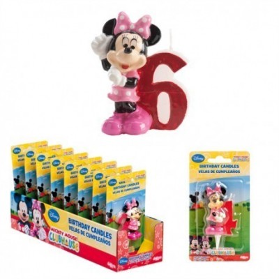 Vela da Minnie Mouse da Disney em 3D para o bolo de aniversário do tema Minnie Mouse, com o número 6, com 6,5 cm.