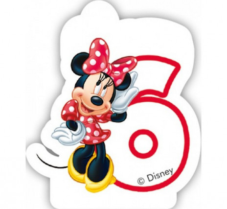 Vela com a inscrição 6 para o bolo de aniversário do tema da Minnie da Disney.