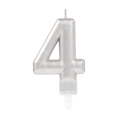 Vela nº4 de aniversário em tom de prateado metálizado.