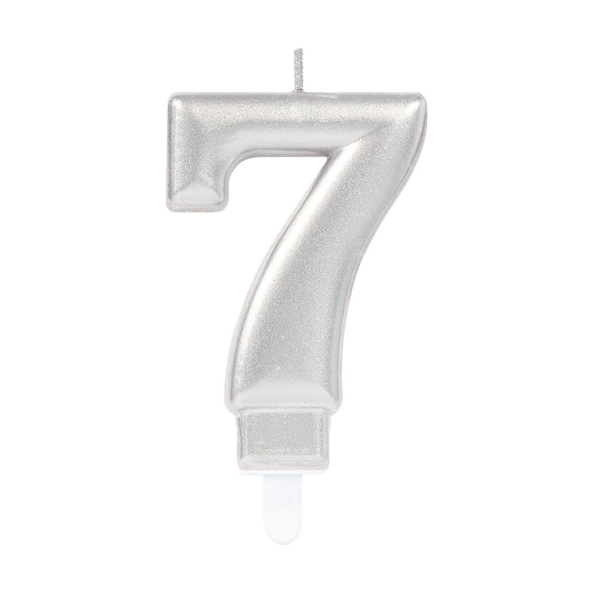 Vela nº7 de aniversário em tom de prateado metálizado.