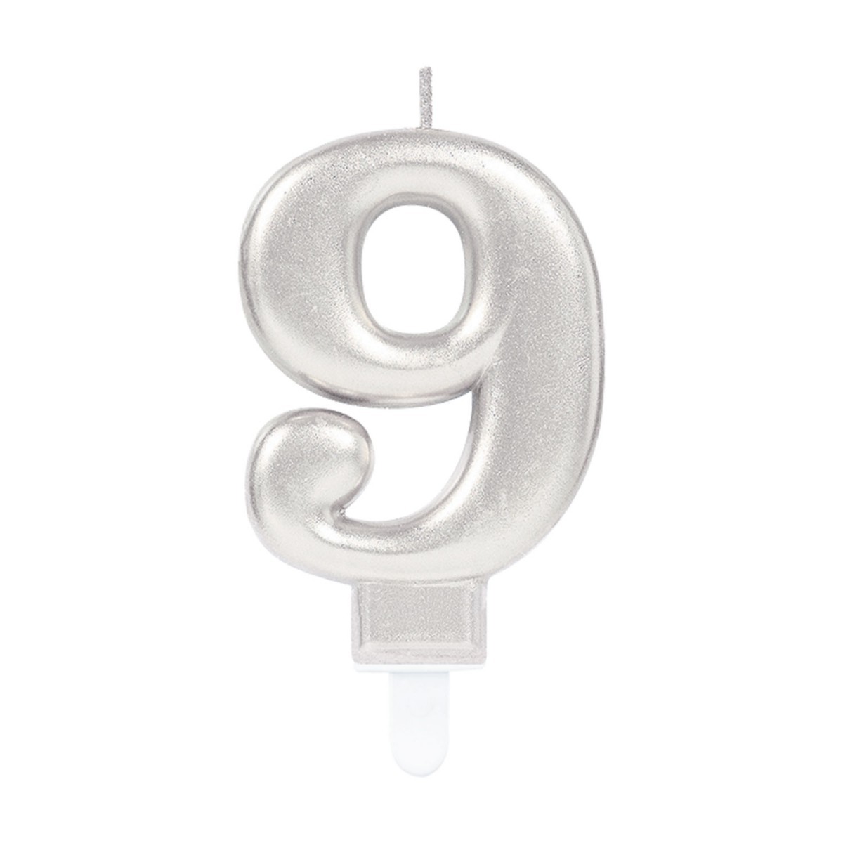 Vela nº9 de aniversário em tom de prateado metálizado.