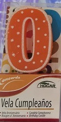Vela nº0 de aniversário em cor de laranja com bolinhas branca com cerca de 6cms.